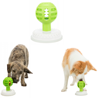 Le KONG Wobbler est un jouet distributeur de nourriture qui promet des sessions de jeu riches en action et stimulantes du point de vue mental. Le jouet, qui arbore la forme classique KONG, se tient droit jusqu’à ce que le chien le pousse avec sa patte ou sa truffe. Il distribue alors des récompenses savoureuses en oscillant, tournant et roulant. Ses mouvements imprévisibles en font un jouet irrésistible, même pour les utilisateurs les plus chevronnés, qui stimule l’instinct naturel des chiens. Le KONG Wobbler peut également être utilisé en remplacement de la gamelle afin de prolonger le moment du repas et inciter votre chien à faire de l’exercice. Passe au lave-vaisselle. Très résistant, même pour les chiens les plus destructeurs. Taille 15cm. 19€